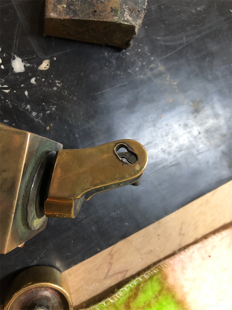 このまま使うと破損してピアノが倒れる危険があります。今回は真鍮製の棒を入れて穴を埋めて塞ぐことにしました。